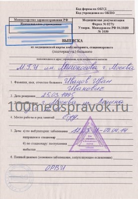 Купить медицинскую справку о болезни формы 027/у (выписка из истории болезни) с доставкой в любой город Купить медицинскую справку в Якутске | медицинские справки Якутск